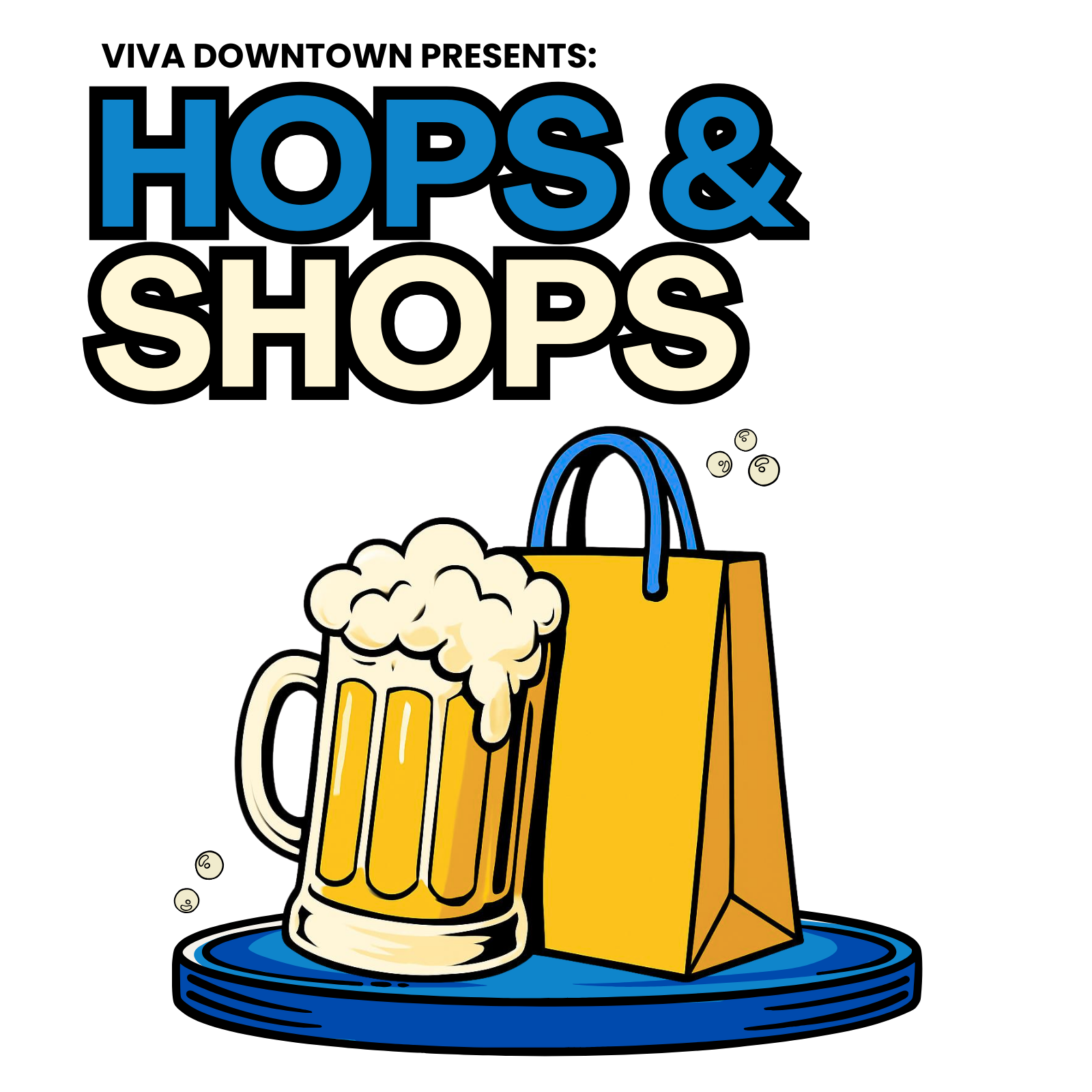 Your Hops and Shops Ticket Includes: 6.5 Oz Hops and Shops themed Tasting Glass, A Hops and Shops Inked Up Graphics Tote Bag, A Downtown Walking Map, Downtown Business Specials and Deals, and all the Craft Beer you can taste! (Responsibly of Course)