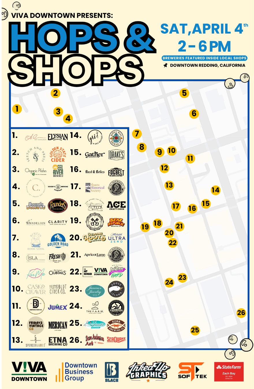 WALK, SHOP, and TASTE Craft Beer from West Coast Breweries located in fantastic Downtown Redding Businesses.